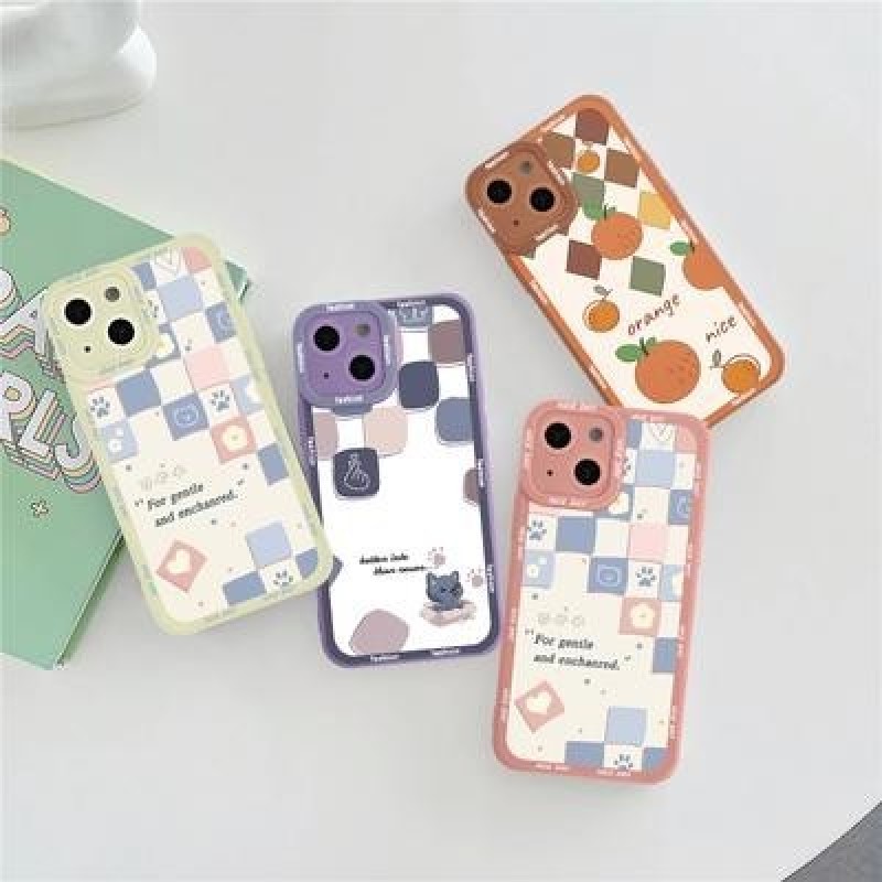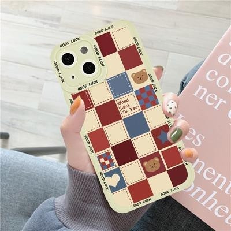 Квадрат сетка Медведь Кошачий чехол для iPhone 14 13 12 11 Pro Max Samsung Galaxy A53 A32 A52 S22 A5