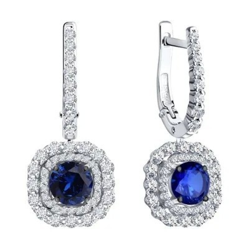SOKOLOV Diamonds, Серьги из белого золота с бриллиантами и сапфирами, 2021106-3, декоративные, 585 п
