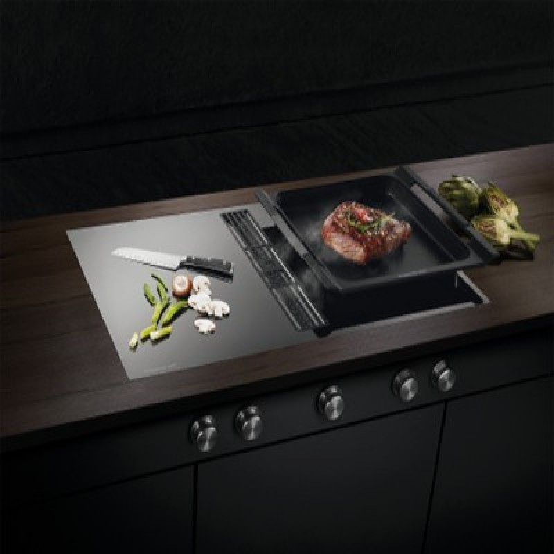 Индукционная варочная панель с вытяжкой Kuppersbusch KMI 9850.0 SRВарочная панель:-13-ступенчатая регулировка мощности «knobControl» cо стальными поворотными переключателями (в комплекте)-Цифровой дисплей для управления вытяжкой-3 специальные ступени: ступень плавления: ? 42 °С, ступень поддержания тепла: ? 70 °С, ступень для приготовления пасты: ? 94 °С-Распознавание наличия и размера посуды-Автоматика закипания-Индикация остаточного тепла-Память при отключении-Принудительное отключение (ограничение продолжительности работы)-Функция объединения ближней и дальней варочных зон в одну-Подключение к вытяжке с правой стороны-Класс энергоэффективности вытяжки: A-Размер рабочих зон: 210x190 ммВытяжка:-4-ступенчатая регулировка мощности вытяжки-Цифровой дисплей для управления вытяжкой-Производительность вытяжки: в стандартных режимах не более 530, в интенсивном режиме – 620 м3/чМощность:-Дальняя левая и ближняя правая: 2,1 / 3,0* кВт-Ближняя левая и дальняя правая: 1,6 / 1,85* кВтПотребляемая мощность:-Панель: 7,4 кВт-Вытяжка: 0,115 кВтУровень шума вытяжки:-Минимальный: 45 дБ-Максимальный: 55 дБ-Интенсивный режим: 68 дБ-Глубина столешницы: 55 ммПреимущества индукционной варочной панели:-Энергоэффективный способ приготовления пищи за счет прямой передачи энергии посуде (требуется соответствующая посуда, изготовленная из магнитных материалов)-Повышенная безопасность, так как передача энергии происходит только при нахождении посуды на варочной панели-Высокая эффективность теплопередачи между индукционной варочной зоной и дном посуды-Высокая скорость нагрева-Низкая опасность ожогов, так как варочная зона нагревается только от контакта с дном посуды; выкипевшая жидкость не прилипает к поверхности-Быстрое и точное регулирование мощностиИндукцияМногие профессиональные повара являются убежденными сторонниками этой энергии. Индукцию можно применять так, как никакой другой вид энергии - быстро, экономно и безопасно. Секрет индукции: энергия подается туда, где стоит посуда с электромагнитным дном. Тепло вырабатывается непосредственно внутри дна самой посуды, что способствует максимально быстрому нагреву при минимальном расходе электроэнергии. Кроме того, сама варочная панель не нагревается, а значит, к ней ничего не пригоритРаспознавание и наличие посудыВнутри всех индукционных варочных зон в дополнение к системе распознавания посуды находится датчик распознавания размера посуды. Он определяет диаметр посуды и, при необходимости, включает дополнительный нагревательный элементСплошная индукционная поверхностьСплошная индукционная поверхность позволяет адаптировать размер варочной зоны для индивидуальных потребностей. Варочные зоны обычного размера используются для небольшой посуды. Для посуды большего размера и утятниц каждая ближняя варочная зона может быть объединена с дальней, а также все 4 варочные зоны могут быть объединены в единое пространствоУсиленный нагревИндукционные варочные панели Kuppersbusch способны увеличивать мощность отдельных варочных зон при помощи подключения режима Power. Это позволяет при необходимости значительно ускорить процесс нагреванияХарактеристики:-Потребляемая мощность: варочная панель - 7,4 кВт / вытяжка - 0,115 кВт-Размеры прибора (Ш х Г): 898 х 518 мм -Размеры ниши (Ш х Г): 860 х 500 мм