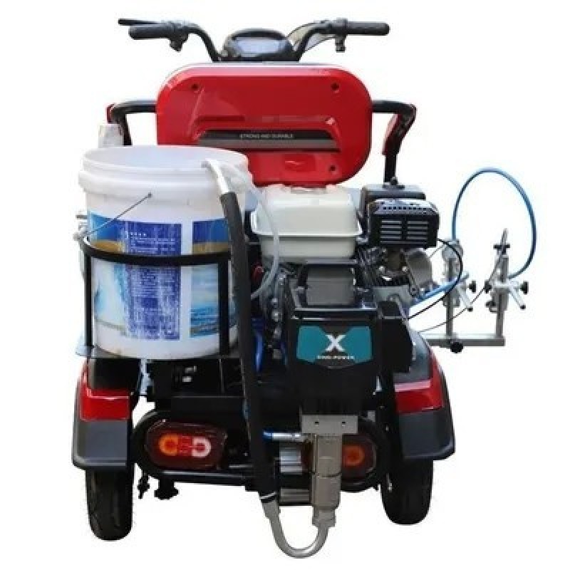 Самоходная разметочная машина DP-6335LSP предназначена для нанесения сплошных и прерывистых линий краской на дорогу, разметки пешеходных переходов, нанесения дорожных знаков и надписей на дорогу, разметки парковочных мест около магазинов и выставочных залов, разметки спортивных площадок и футбольных полей.Также машину можно использовать для разметки дорожных бордюров, мостовых конструкций, столбов фонарного освещения, как бензиновый окрасочный агрегат и красить фасады зданий и бетонные заборы. Разметочная машина DP-6335LSP оснащена передними светодиодными фарами и задними фонарями. Указатели поворота переключаются на руле. Установлено зеркало заднего вида и звуковой сигнал для безопасного движения по дорогам. Имеет 3 скорости движения вперед и задний ход. Управление окрасочными пистолетами выведены на руль и удобны для использования. Присутствуют фиксаторы различных органов управления разметочной машиной DP-6335LSP.· Высокая скорость дорожной разметки · Окрасочный пистолет снимается с крепления и им можно наносить краску вручную по шаблону, размечать пешеходный переход или рисовать знаки дорожного движения.· Емкость с краской устанавливается непосредственно на машину· На машине 6315L установлен шланг 15 метров, который позволяет вручную наносить краску на удалении от машины.· Производительность - 4 л/мин.Двигатель - ХондаМаксимальное рабочее давление - 2 175 Psi / 150 барМаксимальная скорость подачи - 4 литров в минутуМаксимальный размер наконечника - 0,019 дюйма / 2 распылительДвигатель - 6 НР