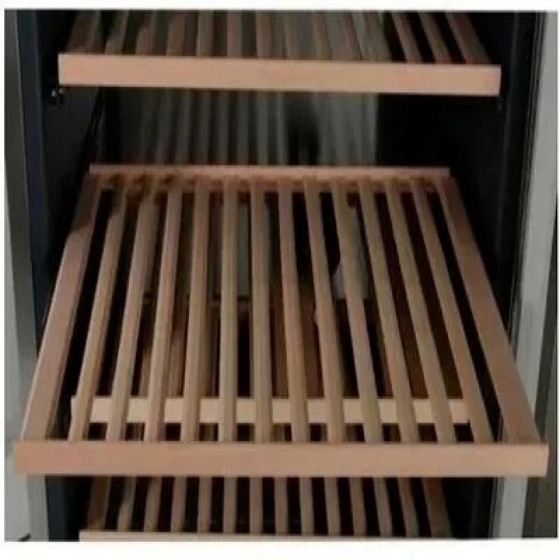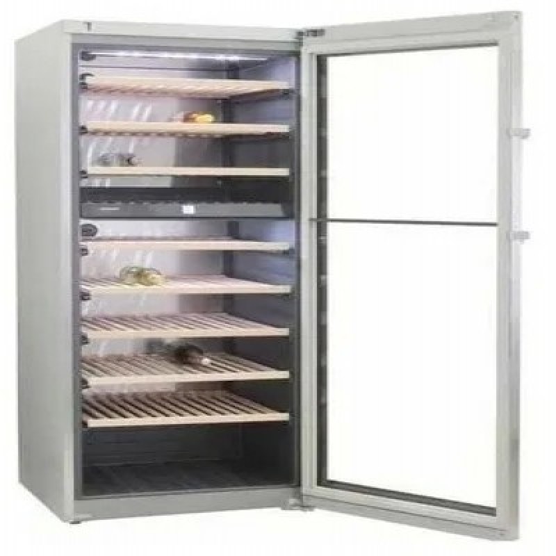 Винный шкаф с регулировкой температурного режима Общие данные:Размеры:высота: 192 смширина: 70 смглубина: 74.2 смОбщий объем/ Полезный объем: 593/516 лМаксимальное количество бутылок: 211Тип управления: электронныйКлиматический класс: SN-ST (от +10°С до +38°С)Класс энергопотребления: AГодовое потребление энергии: 182 кВтч/годЦвет: нержавеющая стальДиапазон регулировки температуры: от +5 °C до +20 °CНезависимые холодильные контуры: 2Температурные зоны: 2Тип системы охлаждения: инверторный компрессорВинное отделение:Циркуляционное охлаждение Освещение: Светодиодное продолжительно включаемое (плавное изменение яркости)Количество полок: 10, из них 8 выдвигающихся на телескопических шинах и 1 демонстрационнаяМатериал полок для хранения вина: натуральное деревоФильтр из активированного угля Дополнительная информация:Управление: на ЖК-дисплееУправление: сенсорноеСигнализация неисправности: oптическая и акустическаяИндикатор температуры Защита от детей Уровень шума: 38 дБЗамок интегрированМатериал двери/крышки: тонированный стеклопакет в раме из нержавеющей сталиСторона открывания двери: правая, перенавешиваемаяРучка из алюминия со встроенным толкателем