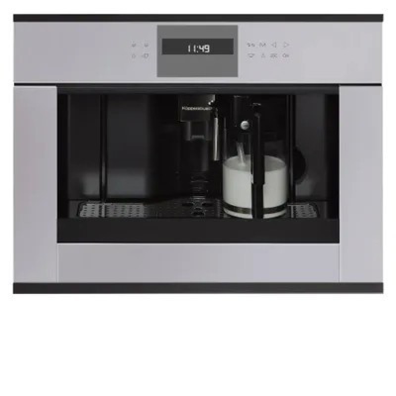 Встраиваемая кофемашина Kuppersbusch CKV 6550.0ЖК-дисплей с текстовым и графическим полями Электронная система управления с сенсорными кнопками Программируемое количество кофе для 5 размеров чашек (эспрессо, малая, средняя, большая, высокая) Приготовление 1 или 2 чашек Функция подачи молока для приготовления капучино или латте Съемный контейнер для молока с функцией очистки Возможность использования кофейных зерен или молотого кофе Регулируемый по высоте раздатчик кофе Давление при заваривании ? 15 бар 3 температуры кофе на выбор Возможность выбора крепости кофе (5 предварительно заданных уровней) Отдельные нагреватели для заваривания кофе и приготовления горячей воды Программа удаления накипи Автоматическое ополаскивание при включении и отключении Емкость для воды заполняется спереди Электронный таймер с белыми индикаторами Программируемое время включения Режим ожидания Телескопические направляющие для легкого заполнения кофемашиныПодсветка чашек:Наблюдение доставляет удовольствие - хорошо известный факт. Светодиодная подсветка преподносит только что сваренный кофе в правильном свете. И приготовление кофе становится хорошей традициейЕмкость для свежей воды:Духовые шкафы и кофемашины Kuppersbusch легко встраиваются в любую кухонную мебель, так как благодаря наличию емкости для свежей воды подсоединение к водопроводу не требуютсяХарактеристики:Потребляемая мощность: 1,35 кВт (вилка Schuko)Размеры прибора (Ш x В x Г): 595 x 455 x 475 мм (вкл. фасад 20 мм и телескопические направляющие) Размеры ниши (Ш x В x Г): 560 x 450 x 550 мм"
