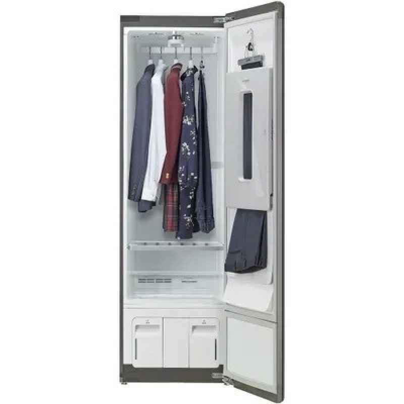 Простой и удобный уход за одеждой у вас домаОткройте для себя быстрый и эффективный способ придать вашей одежде опрятный и свежий вид. Теперь вы можете забыть о неприятных запахах, каплях влаги и складках на предметах вашего гардероба.Забота об одежде с помощью параСистема ухода за одеждой с помощью пара LG Styler с функцией TrueSteam позволит эффективно избавить одежду от запахов, бережно разгладить ее и удалить бытовые аллергены и бактерии. Благодаря усовершенствованной системе сушки вещей можно еще быстрее привести свой гардероб в порядок без усадки и повреждения даже самых деликатных тканей.«Встряхните» складки и неприятные запахиБережный уход за вашим гардеробом: костюмами, платьями, свитерами и другой одеждой. Одно нажатие на дисплей — и ваша одежда выглядит превосходно!Большая вместимость для всей семьиПодвижная вешалка без труда вместит до 5 предметов одежды, а пресс для брюк обеспечит уход даже для больших моделей обхватом в 120 сантиметров и длиной до 110 сантиметров.Эффективная защита от вирусов, бактерий и аллергеновУникальная технология обработки паром TrueSteam бережно воздействует на материал и удаляет до 99,9% опасных вирусов, бытовых аллергенов и бактерий. Технология TrueSteam абсолютно безопасна — пар на 100% состоит из воды и не содержит химических добавок.Основные характеристики- Установка: отдельностоящая- Тип загрузки: сушильный шкаф- Максимальная загрузка белья: 6.5 кг- Вид сушки: конденсационный с тепловым насосом- Тип двигателя: инверторный- Максимальное количество вещей: 5 вещей, 1 брюки- Уровень шума: 40 дБУправление- Тип управления: электронное- Переключатели: сенсорные- Размещение панели управления: на двери- Тип сушки: по таймеру- Количество программ: 3- Программы: освежить (интенсив 84 мин, стандарт 39 мин), сушка (стандарт 90 мин, быстро 20 мин, экспресс-сушка 30-150 мин, после дождя/снега 51 мин), гигиена (стандарт 93 мин, интенсивный режим 115 мин)- Сушка паром: да- Разглаживание складок: да- Поддержка Wi-Fi: да- Управление через смартфон: да- Поддержка мобильного приложения: LG SmartThinQ- Умный дом: LG ThinQДисплей- Тип дисплея: сенсорныйИндикация- Индикация времени до конца программы: даТехнологии- Функция пара TrueSteam: даЗащита и безопасность- Мобильная диагностика: даЭнергопотребление- Напряжение: 220 ВОсобенности конструкции- Форма дверцы: прямоугольная- Направление открывания дверцы: вправоДополнительные функции- Встроенный пресс для брюк: даЦвет и материал- Цвет: серый, зеркальныйКомплектация- Вешалка для рубашек: 3- Вешалка для брюк: в комплекте- Контейнер для воды: да- Инструкция: даРазмеры и вес- Высота: 196 см- Ширина: 60 см- Глубина: 59.6 см- Вес: 95 кг
